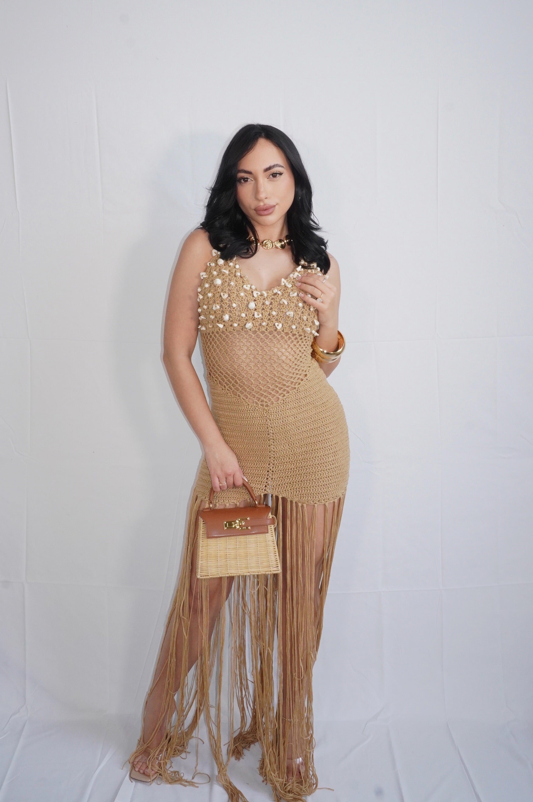 Shelly Maxi Fringe Cover Up Dress (Nude)